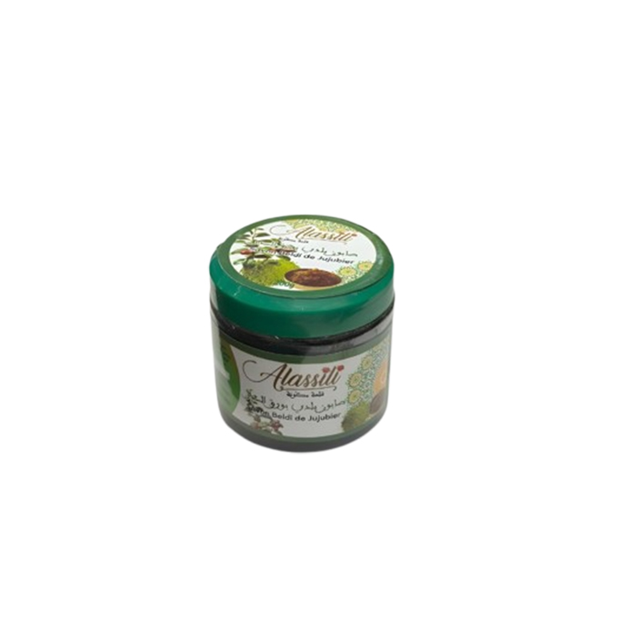 Alassili Savon Beldi de Jujubier is a premium Moroccan black soap infused with jujube (sidr) leaves, known for their powerful purification and skin-softening properties. This natural paste-like soap deeply cleanses the skin, removes impurities, and prepares the body for exfoliation during a traditional Moroccan hammam.