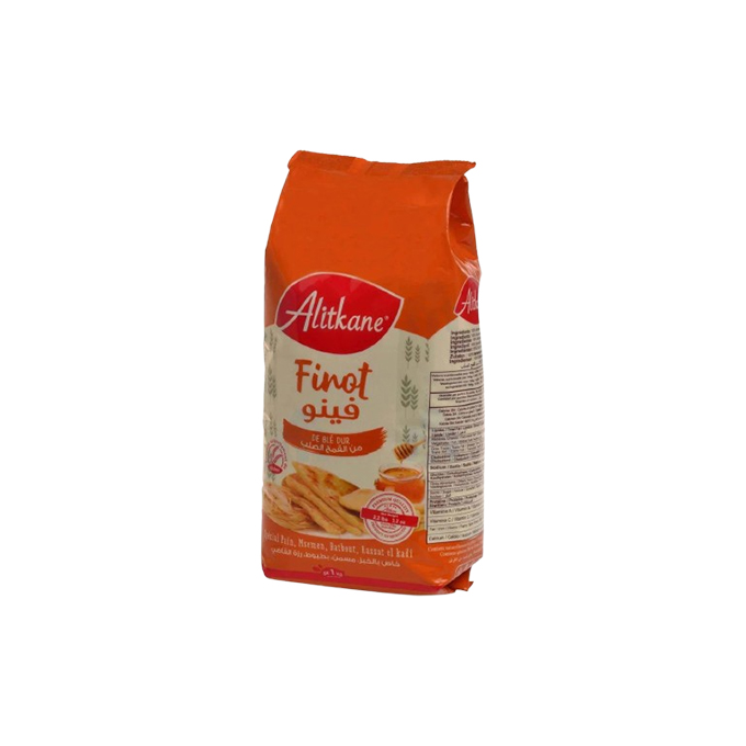 Alitkane Finot is a premium fine durum wheat flour widely used in Moroccan baking. Its smooth, fine texture makes it perfect for preparing khobz, msemen, batbout, harcha, and many other traditional recipes.