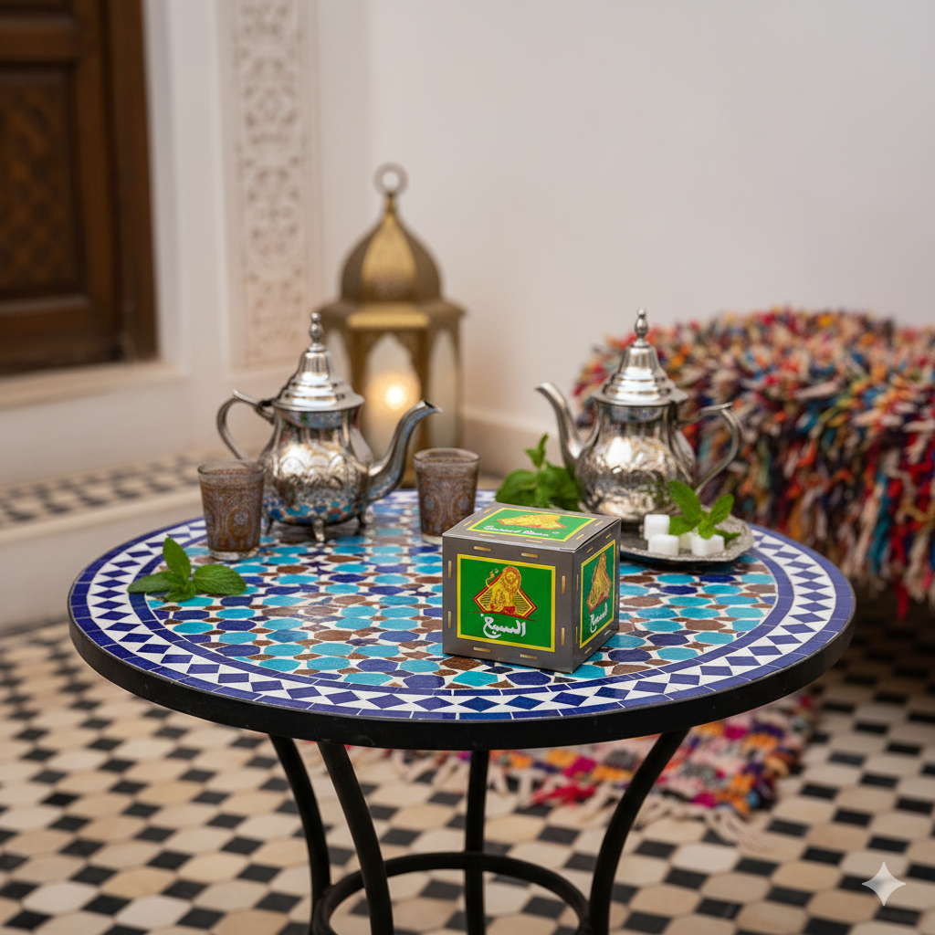 Atay Sba3 is a premium Moroccan green tea blend cherished for its smooth flavour and ceremonial readiness. Carefully processed to maintain quality, this tea offers a balanced taste ideal for the traditional Moroccan tea experience. Whether poured at home or shared with guests, Atay Sba3 brings a refined touch to the tea ritual.