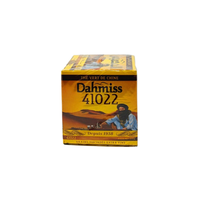 Dahmiss 41022 is a high-quality Moroccan green tea made from extra-fine, tightly twisted Gunpowder grains. Known for its smooth flavour and rich aroma, this blend has been appreciated in Moroccan households since 1958. Whether prepared with mint, absinthe, or served plain, this tea delivers a bold, authentic taste that suits both daily consumption and traditional Moroccan tea ceremonies.