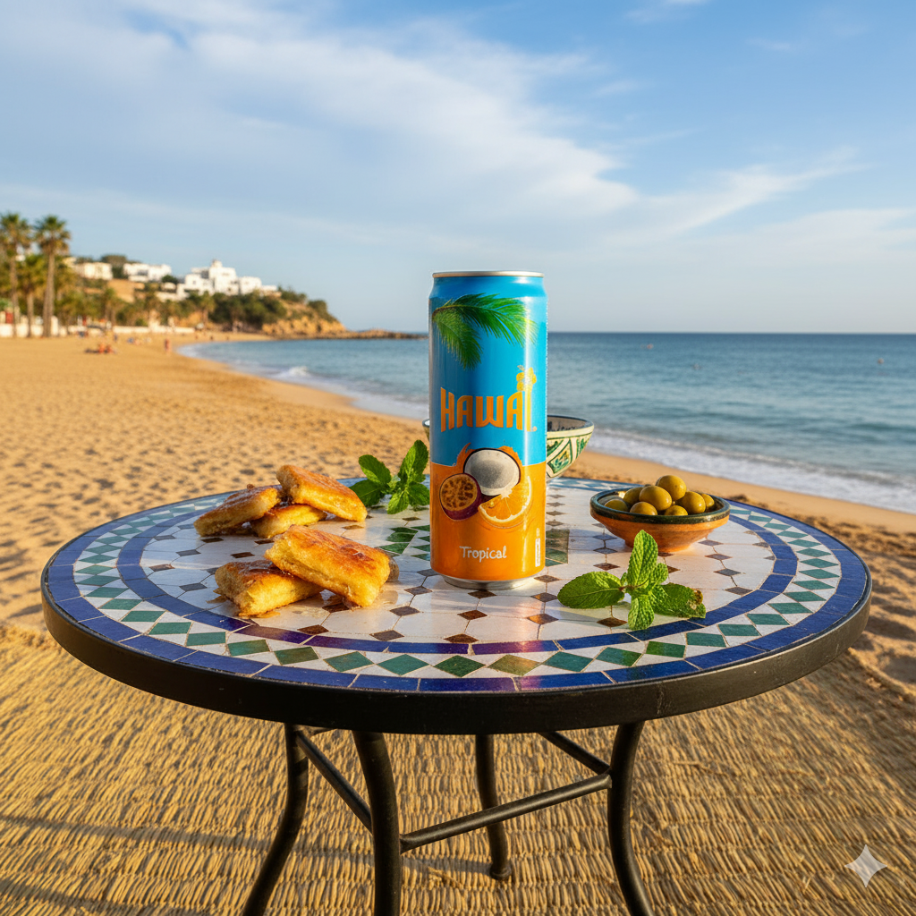 Hawai is Morocco’s iconic tropical fruit soda, loved for its sweet and refreshing blend of exotic flavors. Produced by Coca-Cola exclusively for the Moroccan market, this slim can version is perfect for enjoying on the go. With notes of pineapple, passion fruit, and citrus, it delivers a true taste of Moroccan summertime in every sip.