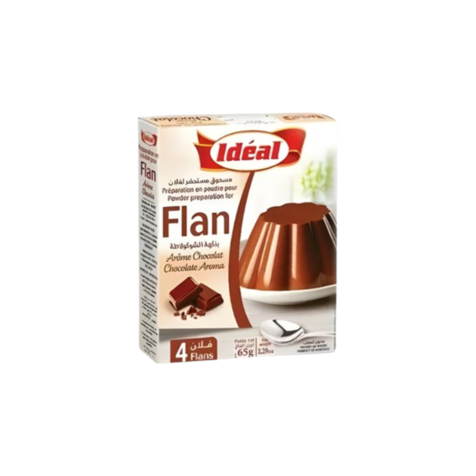 Idéal Chocolate Flan Dessert Mix is a rich and creamy powdered preparation that allows you to easily make smooth flan with a delicious chocolate flavor (نكهة الشوكولاتة). Known in Moroccan kitchens as فلان إيديال, it is a favorite dessert for both children and adults.