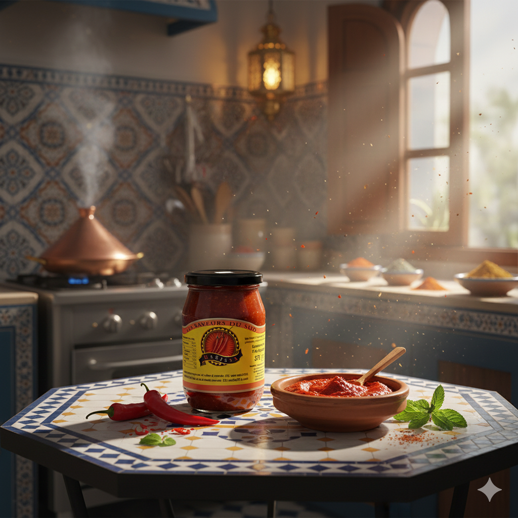 Les Saveurs du Sud Harissa is a bold and aromatic chili paste made from finely blended red peppers, spices, and oil. Known for its deep flavour and authentic North African heat, this harissa is perfect for adding a spicy kick to couscous, tajines, grilled meats, soups, sandwiches, marinades, and everyday cooking.