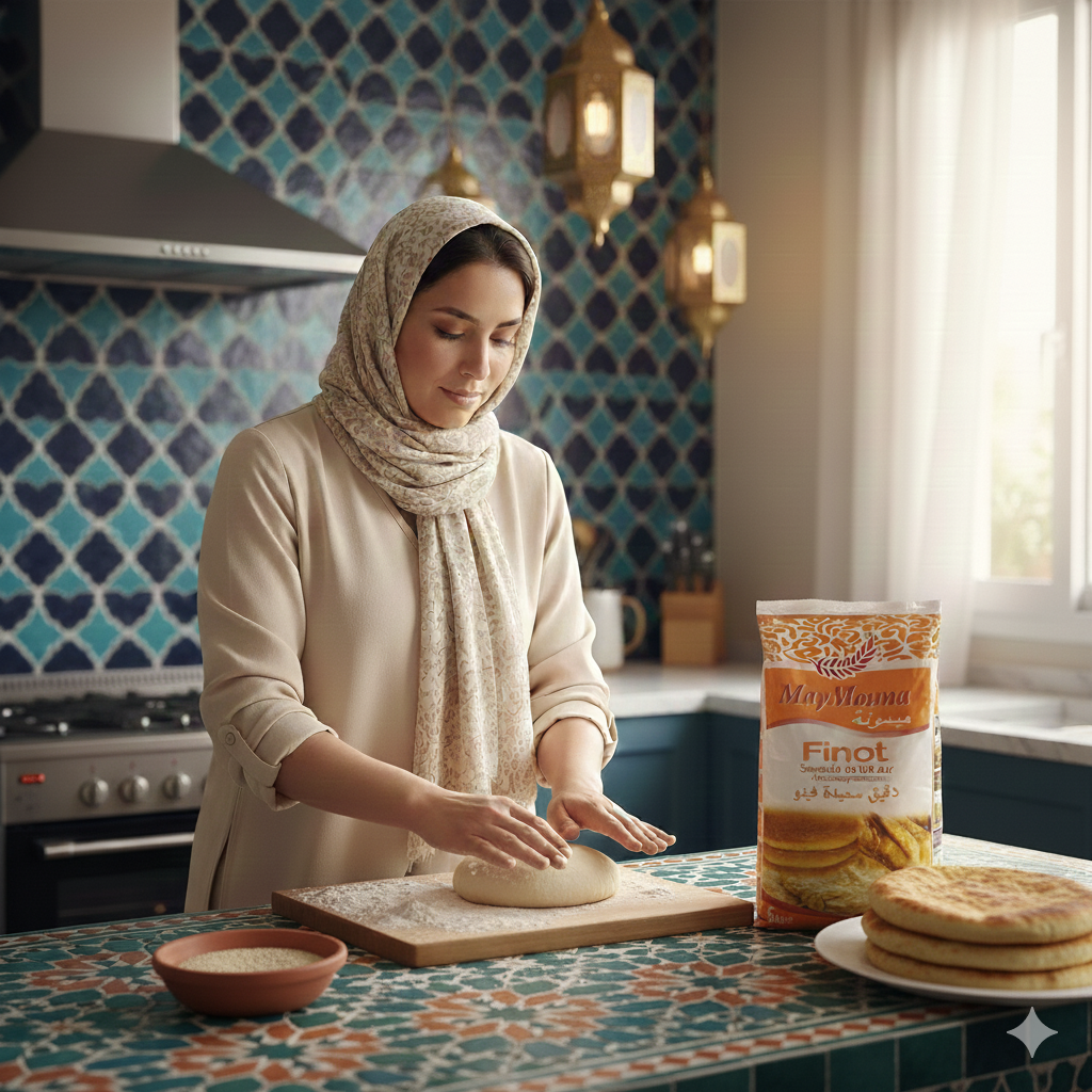 MayMouna Finot is a fine-quality semolina made from premium Moroccan durum wheat. Its smooth texture makes it perfect for preparing traditional Moroccan baked goods such as batbout, harcha, beghrir, krachel, and various pastries.