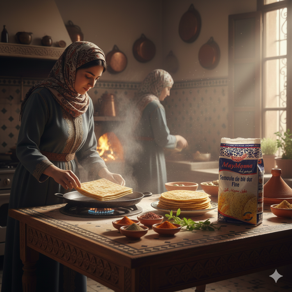MayMouna Fine Semolina is made from high-quality durum wheat, offering a smooth, fine texture ideal for traditional Moroccan recipes. This 5kg bag is perfect for preparing delicate dishes such as baghrir (Moroccan pancakes), harcha, crepes, and fine dough preparations.