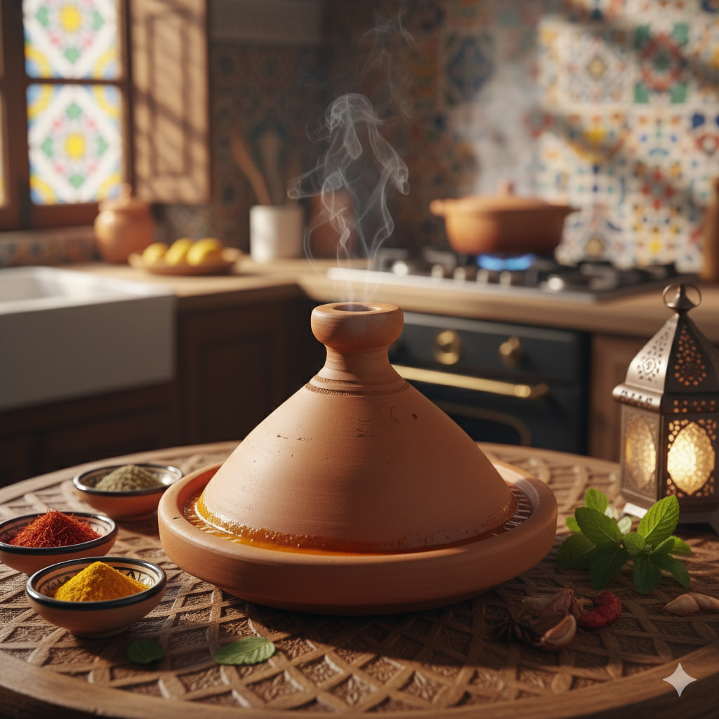 This medium Moroccan clay tagine is crafted by skilled artisans using traditional techniques passed down through generations. Perfect for everyday cooking, it allows you to prepare authentic Moroccan meals with rich, slow-developed flavors.