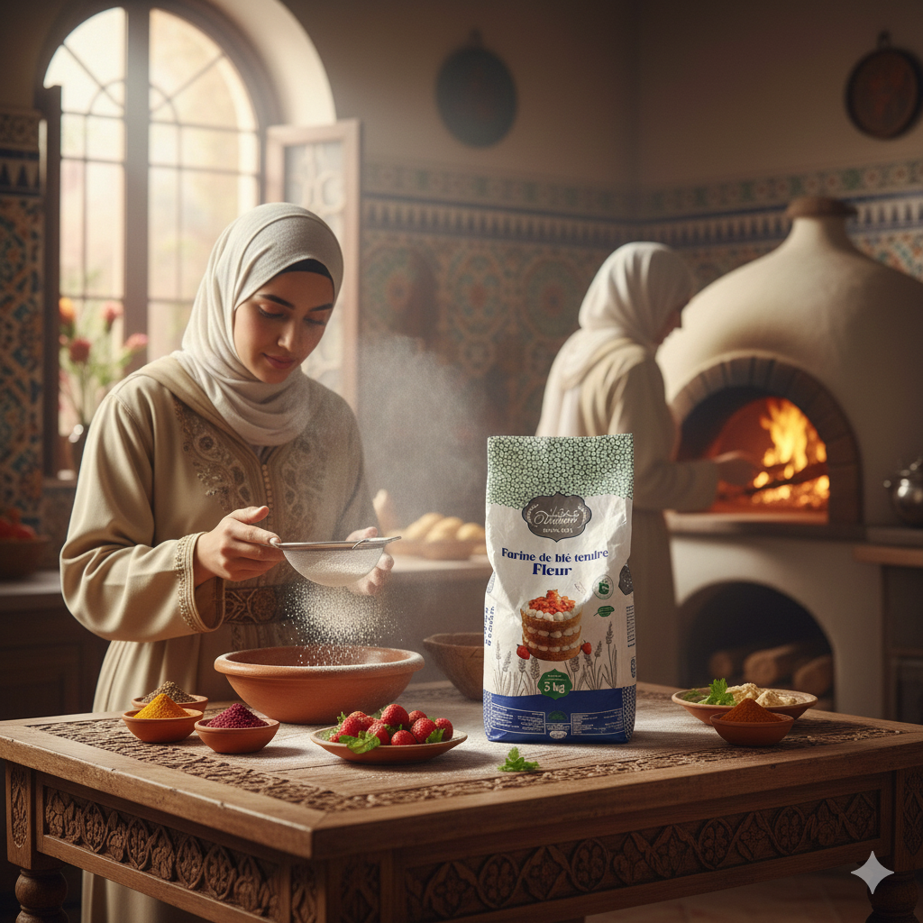 Othman Farine Fleur is a premium-quality soft wheat flour designed especially for baking delicate and fluffy pastries. Its fine texture ensures excellent mixing, smooth dough formation, and perfect results for cakes, cookies, tarts, crêpes, and other sweet creations.