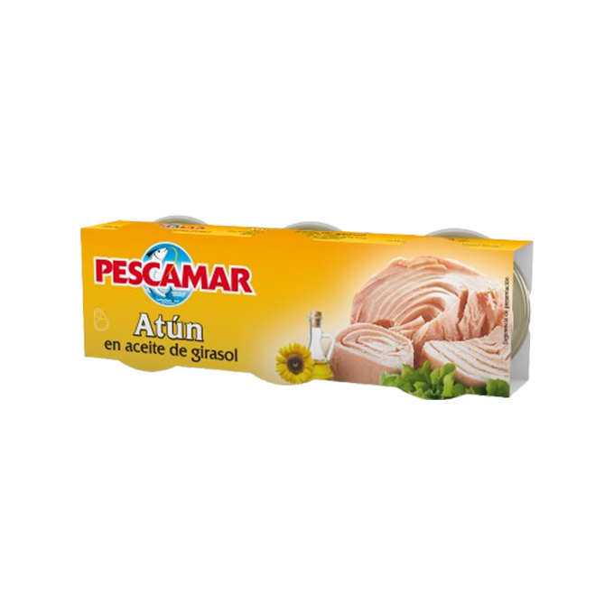 Pescamar tuna in sunflower oil offers a light, tender texture and a mild, delicious flavour. Packed in convenient individual tins, this tuna is perfect for salads, sandwiches, pasta dishes, or quick meals. The sunflower oil keeps the tuna moist while preserving its natural taste.